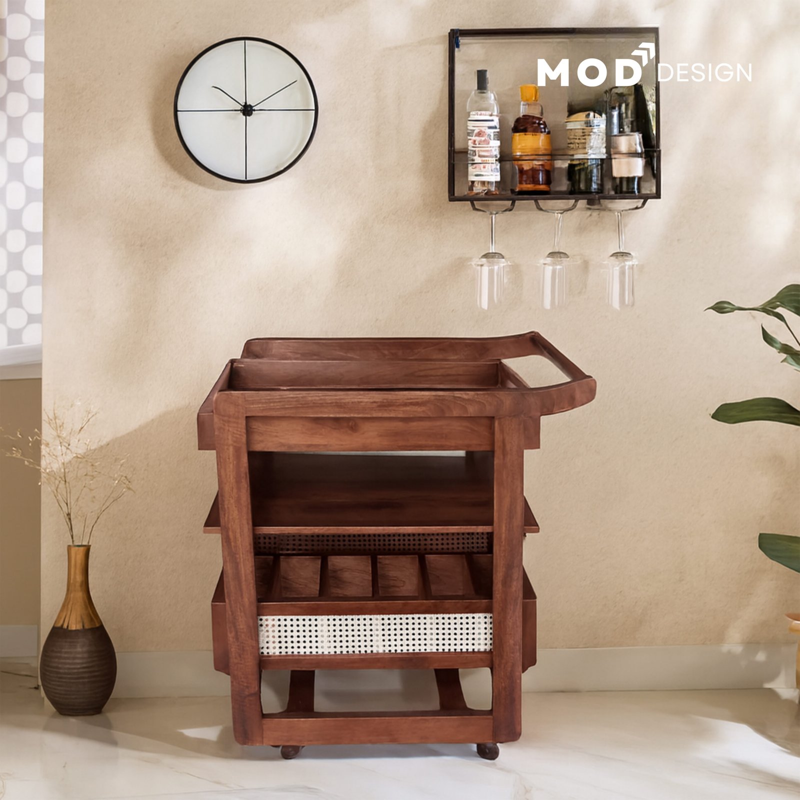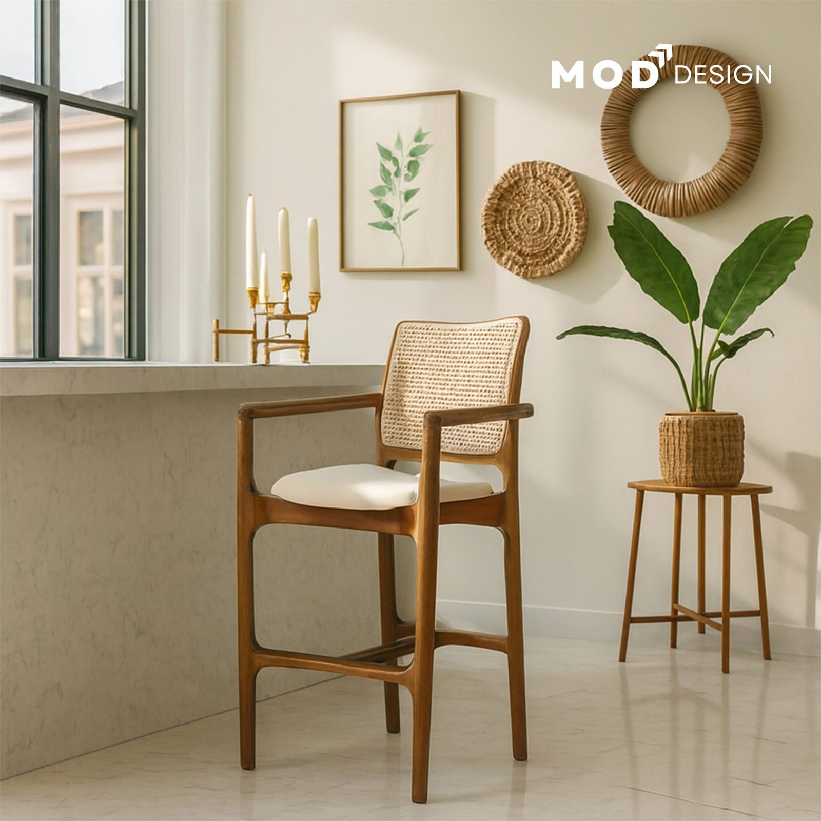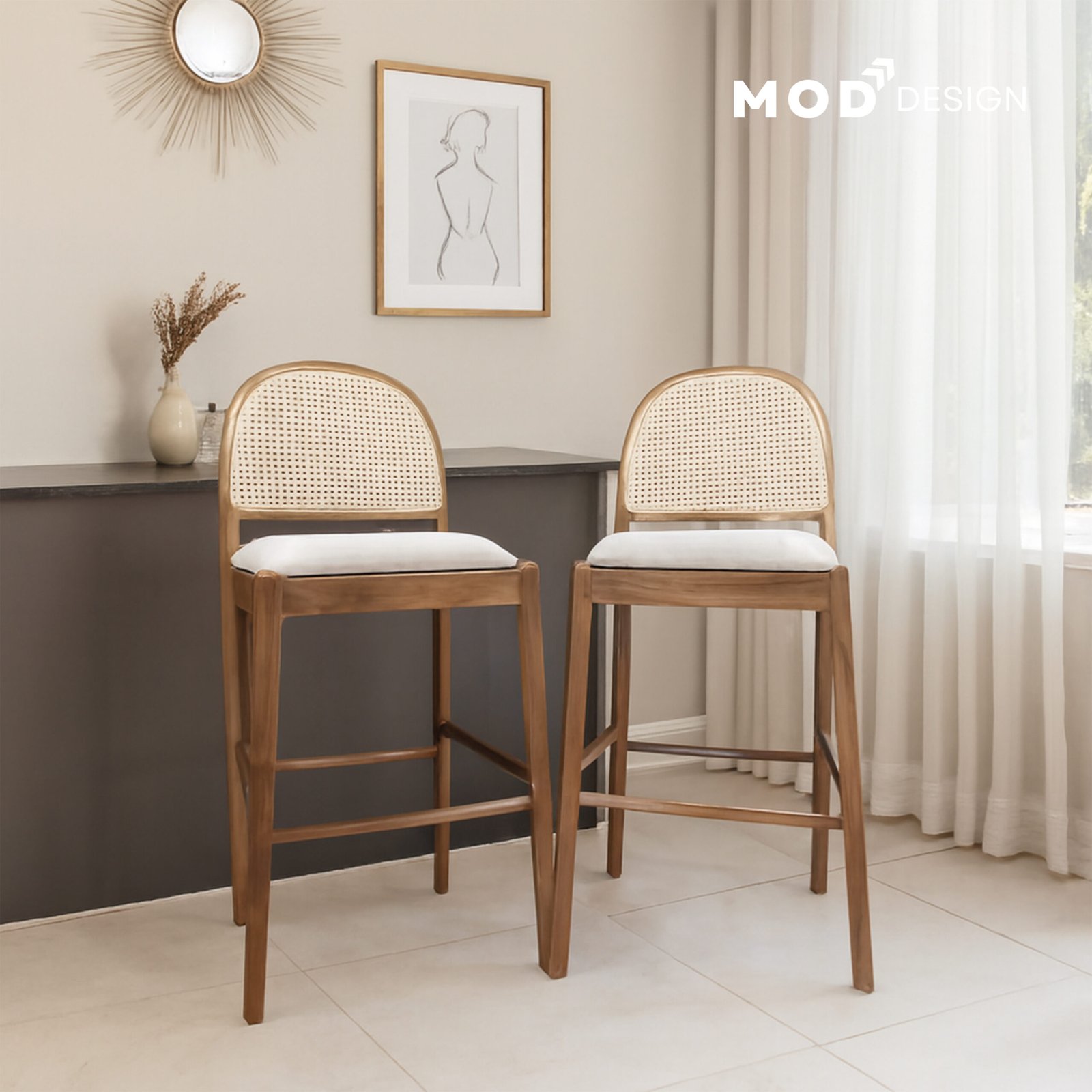 Material: Solid Acacia Wood, Natural Cane & Upholstery
