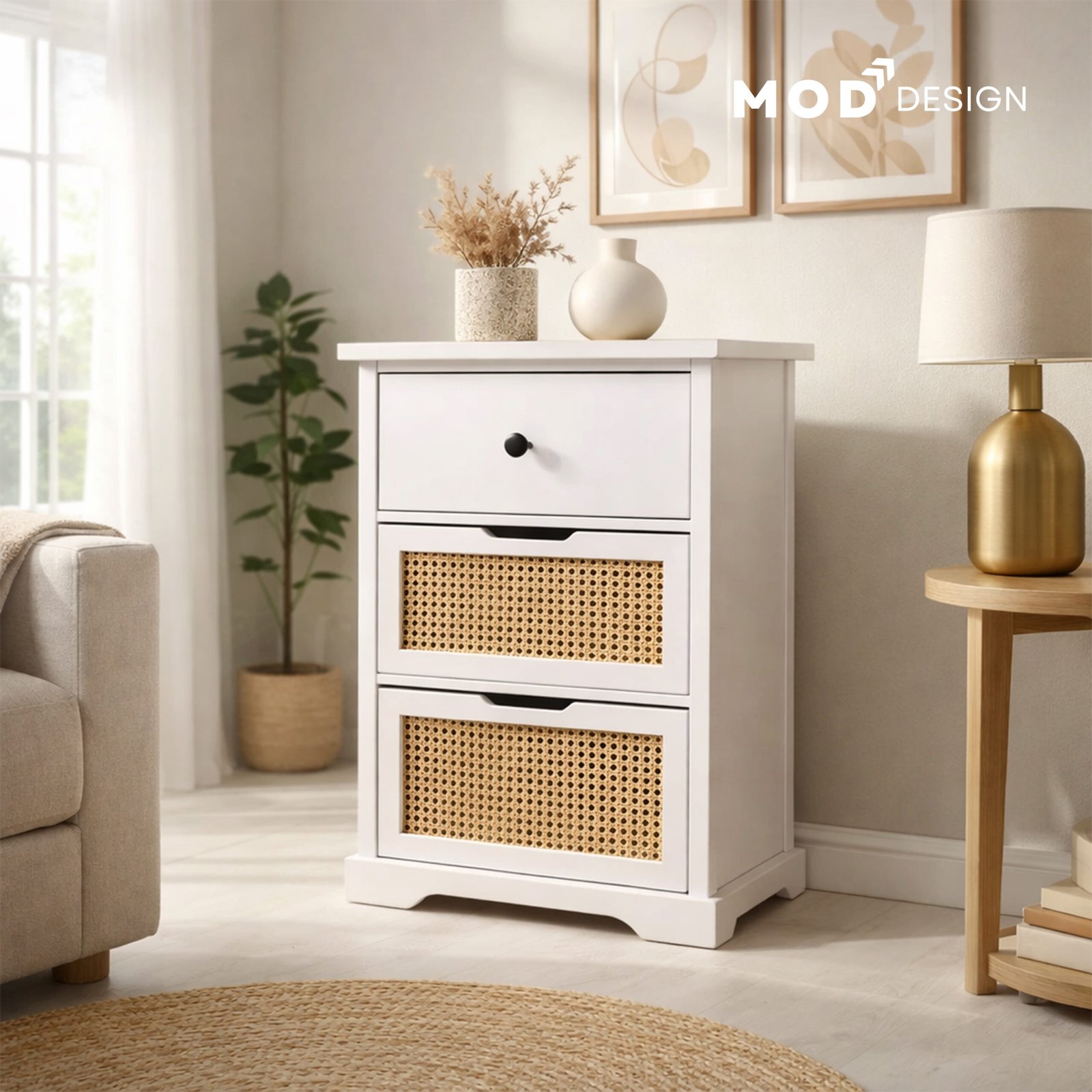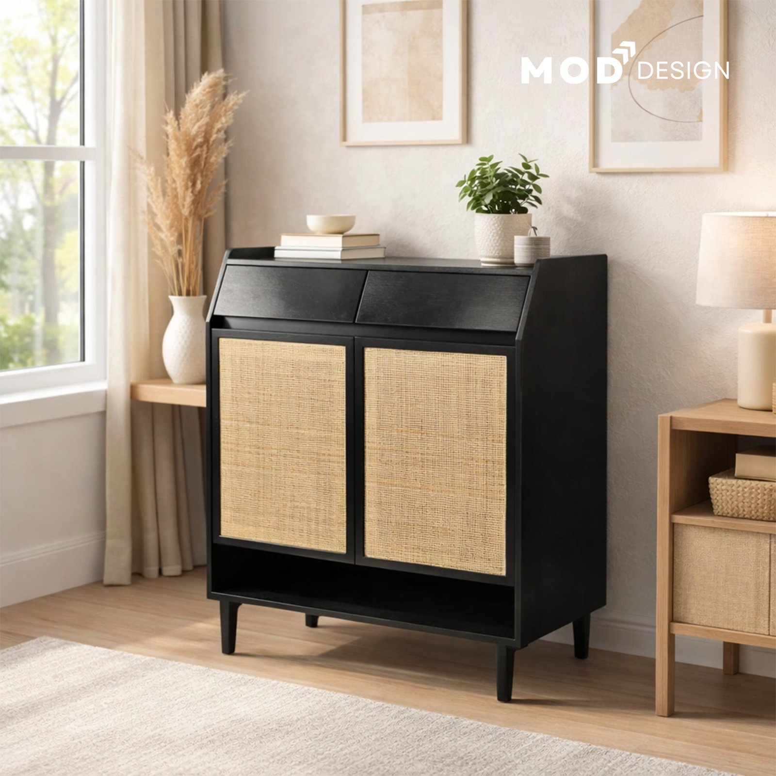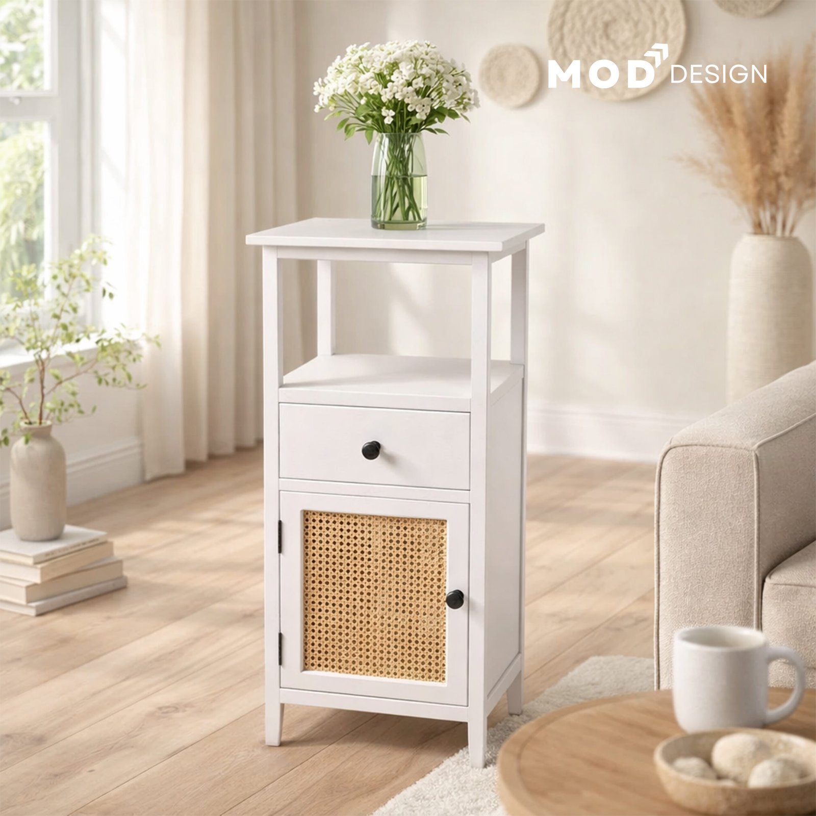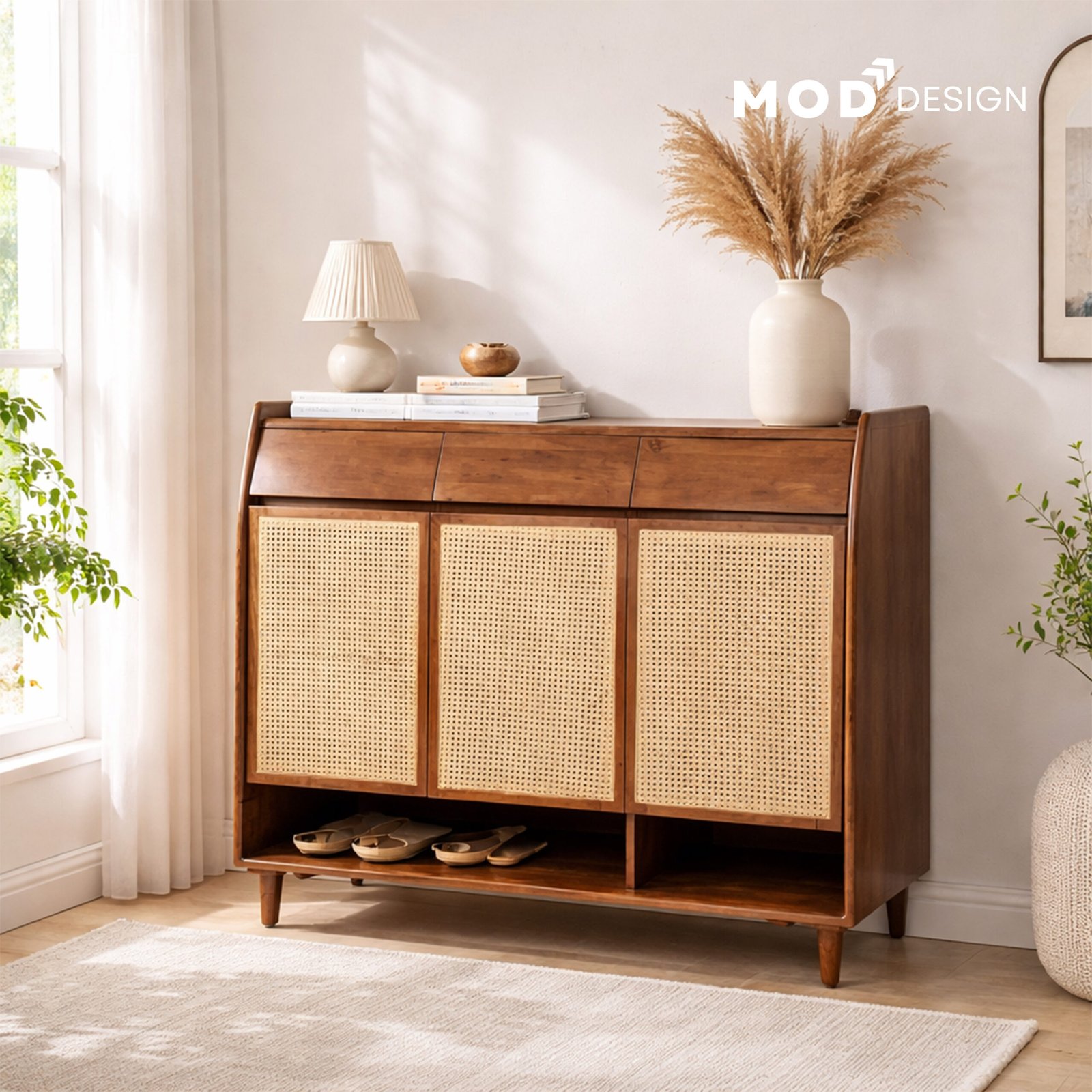 Material: Solid Acacia Wood & Natural Cane