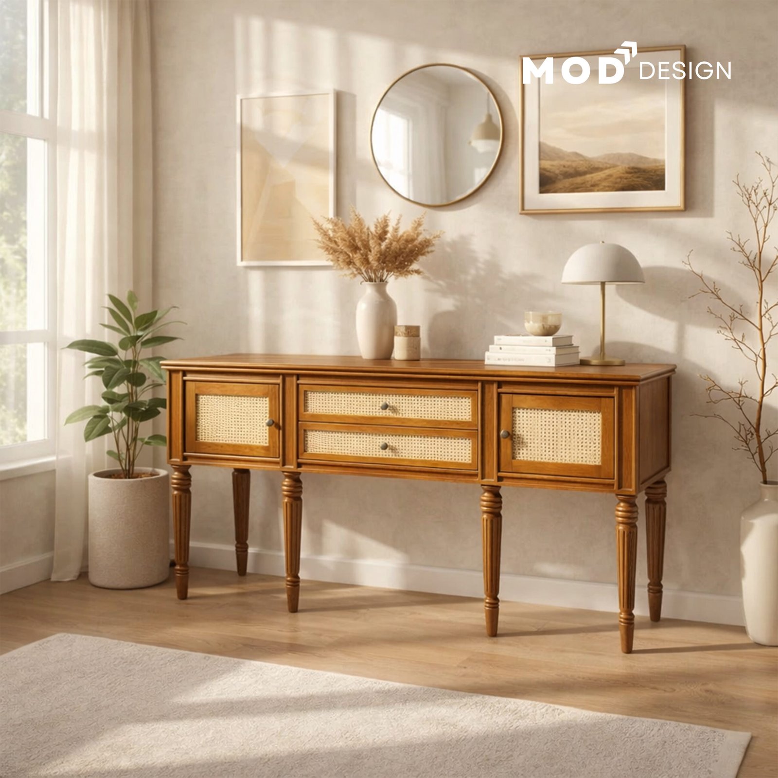 Material: Solid Mango Wood & Natural Cane